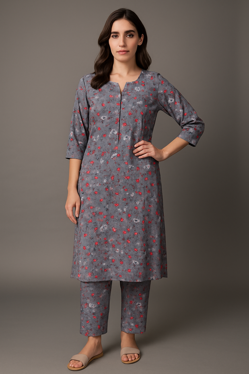 This Floral Blossom Printed Kurti Set includes a 2 piece set featuring a beautiful floral...